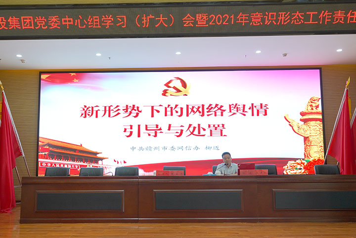 6月22日下午,贛州城投集團(tuán)舉辦黨委中心組學(xué)習(xí)(擴(kuò)大)會(huì)暨2021年意識(shí)形態(tài)工作責(zé)任制專(zhuān)題培訓(xùn)。市委網(wǎng)信辦副主任柳邁應(yīng)邀授課,集團(tuán)黨委副書(shū)記黃家偉主持并講話(huà),集團(tuán)全體高管出席,各黨支部(黨總支)書(shū)記及支委成員、支部宣傳干事,各部門(mén)、子公司負(fù)責(zé)人及信息員等聆聽(tīng)學(xué)習(xí)。