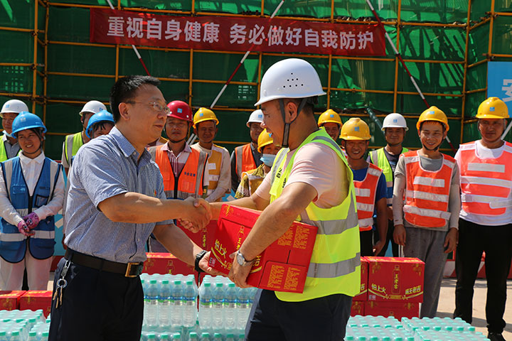 “感謝集團(tuán)工會的關(guān)懷,這幾天天氣都是30多度,今天收到一份這樣舒爽的禮物,我們特別開心,我們會繼續(xù)堅守好自身的工作崗位,努力把工程項目保質(zhì)量保安全建設(shè)好,如期完工交付?!爆F(xiàn)場接受慰問的一線職工代表接過防暑慰問品后,用簡單、樸實話語表達(dá)了對集團(tuán)慰問活動的點贊心情。
