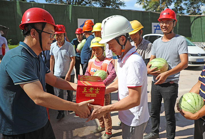 “感謝集團(tuán)工會的關(guān)懷,這幾天天氣都是30多度,今天收到一份這樣舒爽的禮物,我們特別開心,我們會繼續(xù)堅守好自身的工作崗位,努力把工程項目保質(zhì)量保安全建設(shè)好,如期完工交付。”現(xiàn)場接受慰問的一線職工代表接過防暑慰問品后,用簡單、樸實話語表達(dá)了對集團(tuán)慰問活動的點贊心情。
