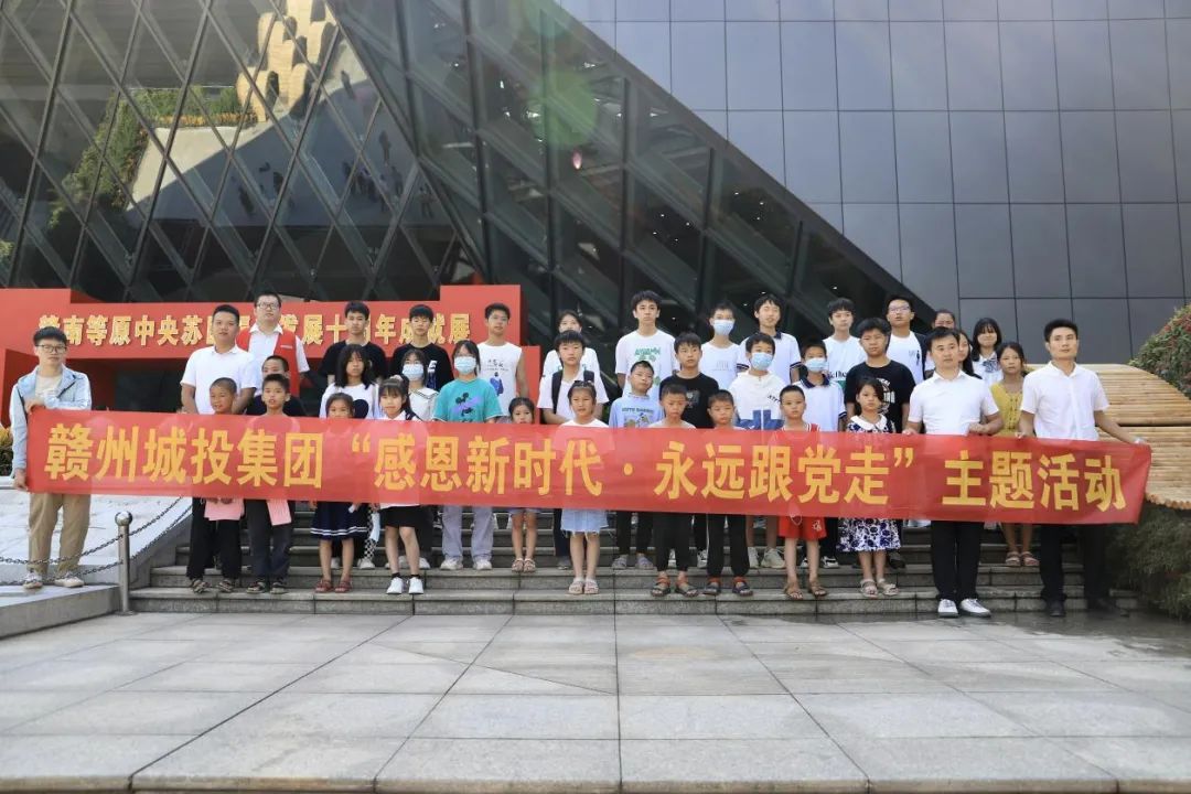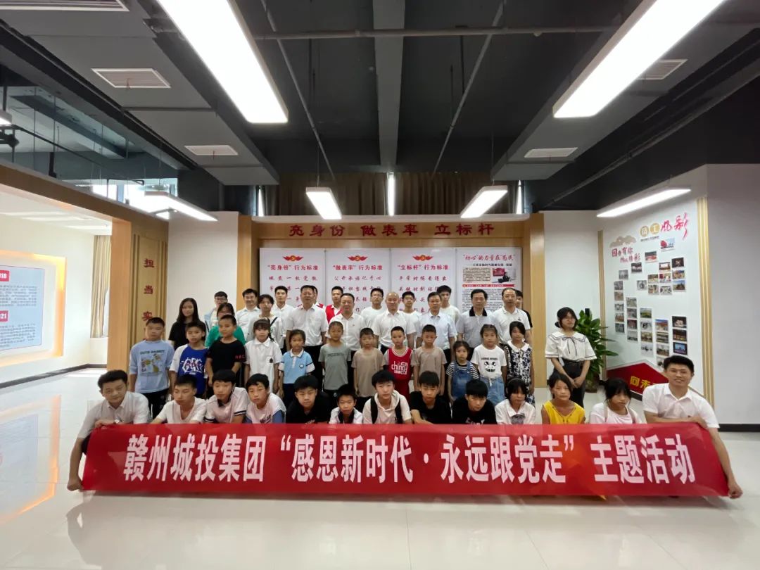 紅色七月,炎炎夏日,崇義縣一群可愛的小朋友來到贛州,留下了一次別樣暑假體驗的美好回憶。7月13日,贛州城投集團黨委開展助學筑夢教育幫扶主題活動,集團領導結對幫扶的崇義縣龍勾鄉(xiāng)東山村、良田村部分學生及其他學生代表共32人應邀參加。這次活動的主題為“感恩新時代·永遠跟黨走”,分別參觀了贛州市自然博物館、贛州科技館和集團黨性教育體驗室,開展了紅色誦讀、講紅色故事、唱紅色歌曲、看紅色影片等活動。期間,集團黨委書記、董事長劉曉方,黨委副書記、總經理郭閩軍及其他在家高管與孩子們親切交流,并一起合影留念。