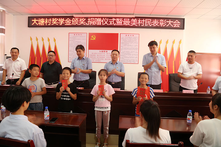 大會(huì)為大塘村7名大塘村小學(xué)優(yōu)秀教師、13名大塘村小學(xué)品學(xué)兼優(yōu)的學(xué)生、13名考入高等學(xué)府的學(xué)子頒發(fā)獎(jiǎng)學(xué)金,共計(jì)發(fā)放獎(jiǎng)學(xué)金3.4萬元,這是獲得“大塘村獎(jiǎng)學(xué)金”的首批教師和學(xué)生。這不僅激勵(lì)大塘村的教師們精益求精繼續(xù)抓好鄉(xiāng)村教育,鼓勵(lì)大塘村的孩子們勤奮好學(xué)、頑強(qiáng)拼搏,還倡導(dǎo)更多愛心人士積極投身支持教育扶貧,堅(jiān)決在大塘村脫貧攻堅(jiān)陣地上阻斷貧困代際傳遞。