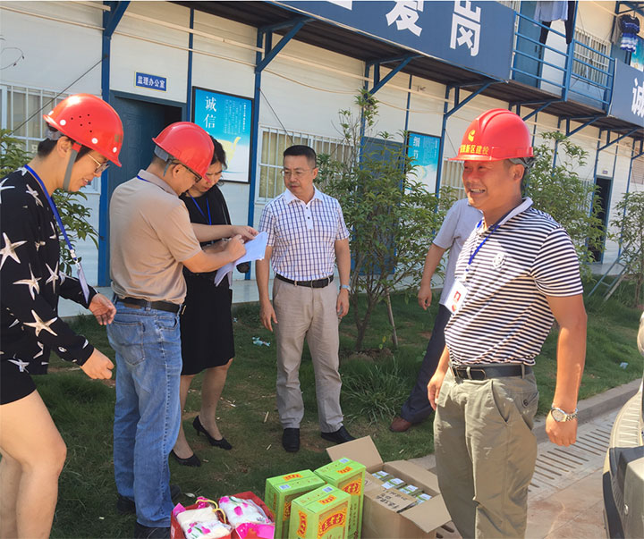 走訪慰問過程中,肖暉主席首先向高溫季節(jié)仍然堅守在工地一線的廣大干部員工致以誠摯的問候,與他們親切交談,鼓勵大家鼓足干勁,加油實(shí)干,克服高溫、疲勞等不利因素,合理安排工作和休息時間,做到安全文明施工,確保工程建設(shè)進(jìn)度。并向他們送上防暑降溫飲料、綠豆、毛巾等物品,把集團(tuán)黨委和工會的關(guān)懷送到他們手上。