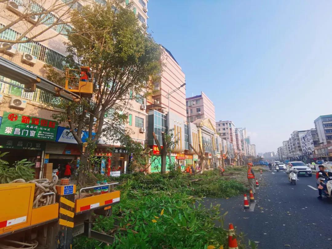 生態(tài)環(huán)境公司將對站北社區(qū)、文明大道、寧都路、楊公路等13個路段及街道約2000多株行道樹進行了修剪。行道樹主要品種為大葉榕、小葉榕,高度均在10-40米之間,有接近100棵為40米高度,整體作業(yè)難度增加,截止目前為此,已修剪200多棵,預計整個修剪工作要持續(xù)到6月中旬。