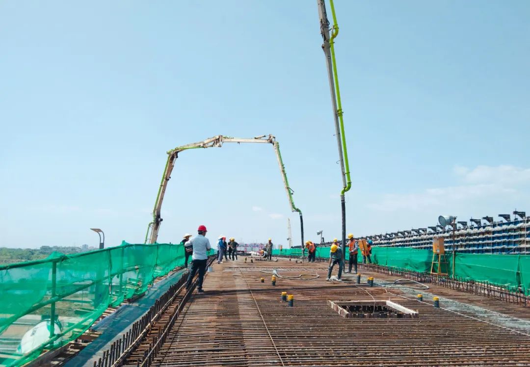 一直備受市民關(guān)注的贛州首座雙層景觀大橋——蟠龍大橋,該項目橋面鋪裝澆筑現(xiàn)場施工難度大、混凝土質(zhì)量標(biāo)準(zhǔn)要求高,生產(chǎn)一線黨員主動作為、迎難而上,確保質(zhì)量有保障,做到運輸不掉隊,讓施工方確確實實感受到公司“五一”不停工、不停產(chǎn)的耐心、信心、決心,助推項目高質(zhì)量建設(shè)。