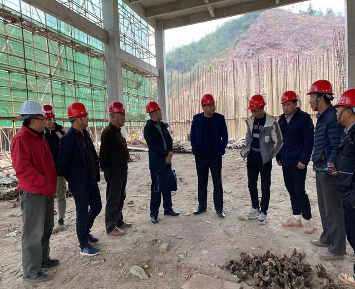 在中國南方稀有金屬貿(mào)易集散中心項(xiàng)目現(xiàn)場(chǎng),工程管理公司工作人員組織參建人員進(jìn)行高支模內(nèi)架搭設(shè)、模板鋼筋施工及砌體結(jié)構(gòu)等施工作業(yè)。