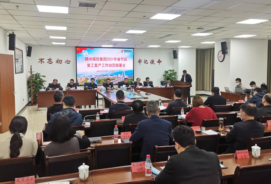 2月18日晚上,贛州城投集團召開2021年春節(jié)后復工復產(chǎn)工作動員部署會。集團黨委副書記(主持工作)、總經(jīng)理李國泉主持會議并講話,集團其他高管出席會議,全體中層等參加會議。