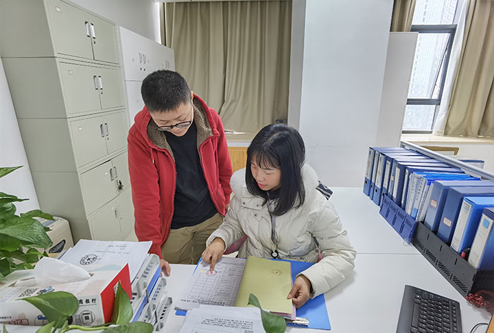 混凝土公司曹惠、曾萍仔細(xì)檢查,嚴(yán)格把關(guān)生產(chǎn)混凝土的原材料,確?;炷脸霎a(chǎn)品質(zhì)。