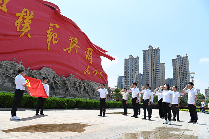 在將軍園三面軍旗及69位革命先烈沖鋒陷陣的大型群雕前,大家重溫入黨誓詞,鏗鏘誓言在將軍廣場回蕩,黨員們對自身的擔(dān)當(dāng)和使命都有了更加深刻的領(lǐng)悟。