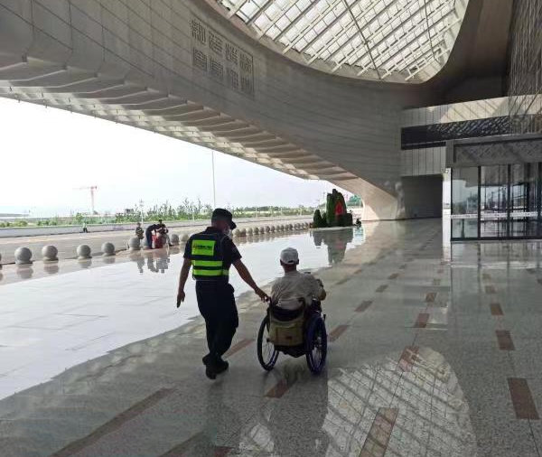 5月12日,支部黨員值班巡邏時(shí),發(fā)現(xiàn)一名殘疾人士坐著輪椅尋找進(jìn)站口,看見龐大的西站各條通道,這位旅客顯得有點(diǎn)焦急,秩序組長(zhǎng)幸慶華趕緊小跑過去,耐心的詢問旅客的需要,指引旅客進(jìn)站路線,為保證旅客安全,一直護(hù)送到了進(jìn)站口,到達(dá)進(jìn)站口時(shí),旅客握住工作人員的手連聲道謝。