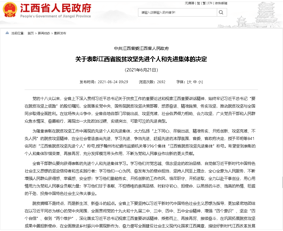 6月23日,省委、省政府召開全省脫貧攻堅(jiān)總結(jié)表彰大會(huì),表彰一批在打贏脫貧攻堅(jiān)戰(zhàn)中作出突出貢獻(xiàn)的個(gè)人和集體,其中,興國縣長岡鄉(xiāng)大塘村駐村工作隊(duì)隊(duì)長兼第一書記,贛州城投集團(tuán)新型建材公司副總經(jīng)理王彪獲“江西省脫貧攻堅(jiān)先進(jìn)個(gè)人”榮譽(yù)稱號(hào)。