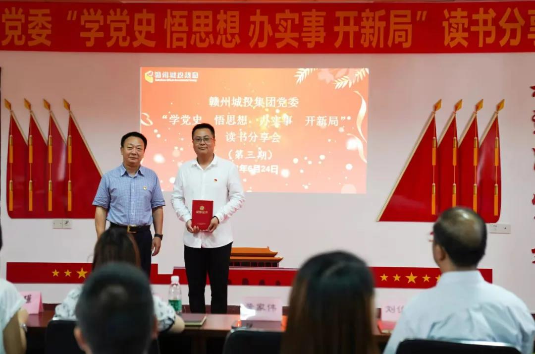 蟬鳴荷香六月天,黨史學習正當時。為推動黨史學習教育走深走實, 日前,贛州城投集團黨委舉辦第三期“學黨史 悟思想 辦實事 開新局”讀書分享會。集團黨委副書記黃家偉出席并講話,集團黨群工作部、辦公室代表,市建筑設計院、天成設計院黨支部全體黨員參加活動。