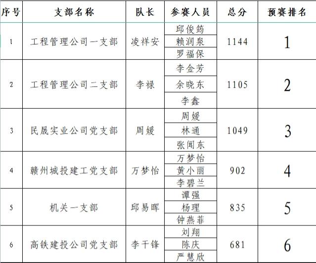 (贛州城投集團(tuán)黨委黨史學(xué)習(xí)教育知識競賽預(yù)賽結(jié)果)