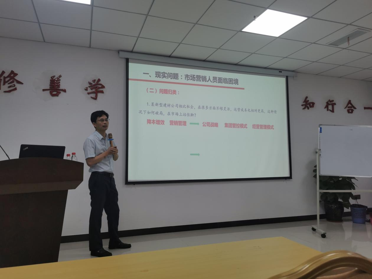 在培訓(xùn)會(huì)上,鄒國(guó)良教授闡述了市場(chǎng)營(yíng)銷人員面臨的困境、全面梳理了目前公司發(fā)展可能存在的問題,從業(yè)績(jī)持續(xù)改善及市場(chǎng)營(yíng)銷方面作為突破口,提出了破解問題的工作方法及應(yīng)用。課堂上,為活躍學(xué)習(xí)氣氛,鄒國(guó)良教授與學(xué)員進(jìn)行互動(dòng)探討,并對(duì)提出的問題進(jìn)行了細(xì)致解答。