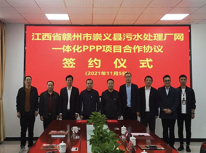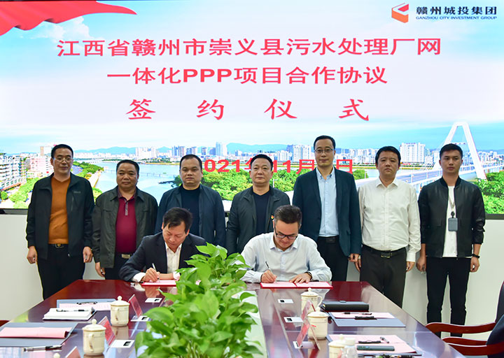 11月5日,贛州城投集團與崇義縣簽訂城鄉(xiāng)污水處理廠網一體化PPP項目合作協議,崇義虔安水環(huán)境公司與崇義縣城管局代表雙方進行簽約,贛州城投集團黨委副書記黃家偉、崇義縣副縣長魏江華等見證簽約并作講話。崇義縣城管局、生態(tài)投資公司相關負責人等參加簽約儀式。