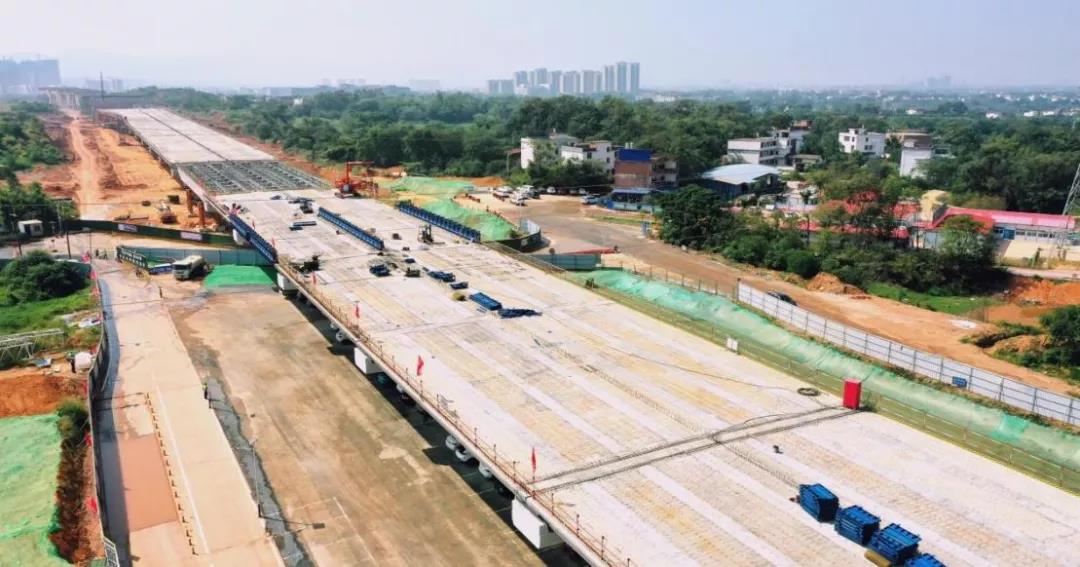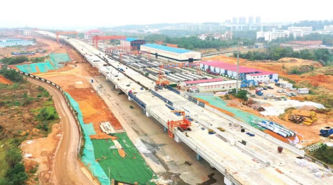 蓉江三路快速路(含地下綜合管廊)項(xiàng)目作為“四橫六縱”中的一條南北走向主干線,南起丁香路,北至筱壩大橋南端接地點(diǎn),總投資約25.87億元,全長(zhǎng)約5.1公里,主路為高架段城市快速路,規(guī)模為雙向6車道。項(xiàng)目于2020年8月1日正式開工,截至2021年11月15日,共完成總工程量的51%,其中橋梁工程完成66.2%,道路工程完成48.7%,地下綜合管廊工程完成約84.6%,預(yù)計(jì)在2022年年底完工。項(xiàng)目建成后,可實(shí)現(xiàn)蓉江新區(qū)、高鐵新區(qū)南北向聯(lián)系,大大提高新老城區(qū)交通服務(wù)水平,實(shí)現(xiàn)贛州交通發(fā)展水平與社會(huì)經(jīng)濟(jì)發(fā)展水平相適應(yīng)。