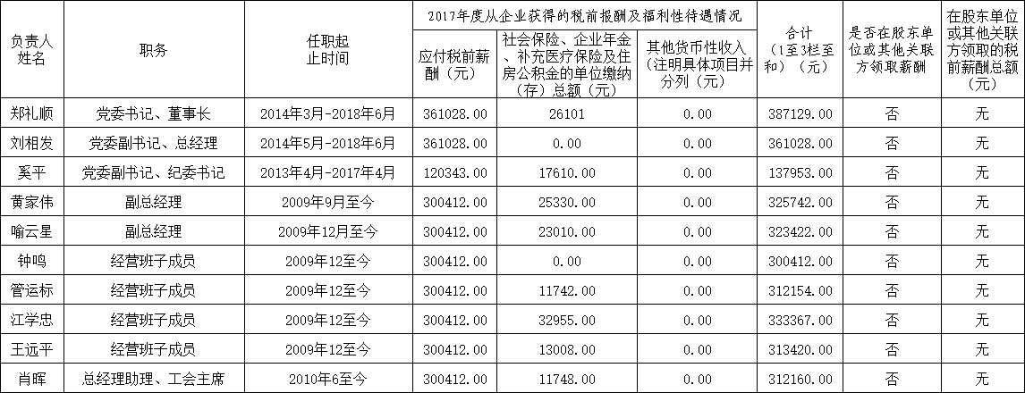 根據(jù)《市屬企業(yè)負責(zé)人薪酬信息披露辦法》,現(xiàn)將本企業(yè)負責(zé)人2017年度薪酬情況披露如下: