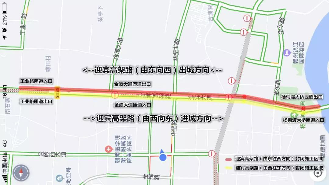 因東江源大道快速路將施工上跨迎賓高架橋主線的鋼混梁,主要施工工序有搭設(shè)鋼梁拼裝平臺、吊裝鋼梁、焊接鋼梁、滑移鋼梁就位等,屆時(shí)將影響迎賓高架橋通行安全,需臨時(shí)封閉迎賓高架橋部分路段。