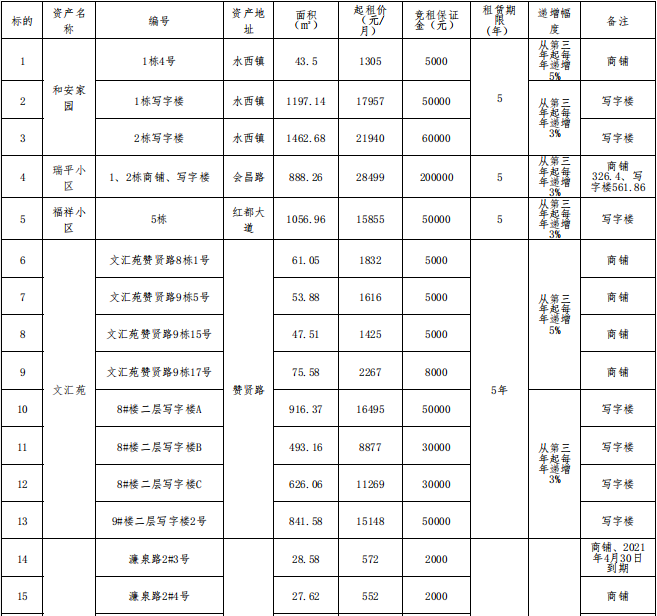 贛州振興實(shí)業(yè)有限責(zé)任公司委托江西江南拍賣有限公司,定于2021年5月28日10:00開始在贛州市公共資源交易中心(長征大道9號(hào))進(jìn)行國有資產(chǎn)公開招租,現(xiàn)歡迎符合條件的單位或個(gè)人前來報(bào)名參加競(jìng)租。