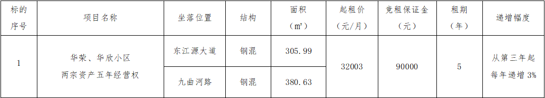 贛州振興實(shí)業(yè)有限責(zé)任公司委托江西江南拍賣(mài)有限公司,定于2021年12月21日15:00開(kāi)始在江西省公共資源網(wǎng)絡(luò)交易服務(wù)平臺(tái)產(chǎn)權(quán)交易子系統(tǒng)通過(guò)網(wǎng)上競(jìng)價(jià)公開(kāi)招租華榮、華欣小區(qū)兩宗資產(chǎn)5年經(jīng)營(yíng)權(quán),歡迎符合條件的單位和個(gè)人前來(lái)競(jìng)租,現(xiàn)將有關(guān)事項(xiàng)公告如下: