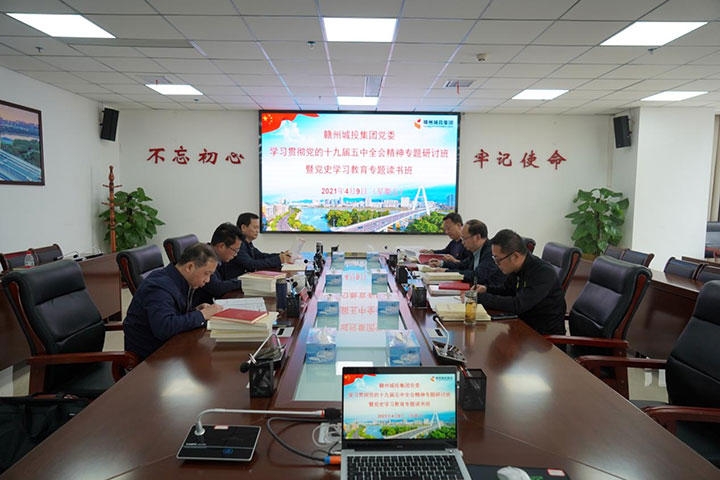 根據(jù)市委部署,4月8日至10日,贛州城投集團(tuán)黨委與市委讀書(shū)班同頻開(kāi)展學(xué)習(xí)貫徹黨的十九屆五中全會(huì)精神專(zhuān)題研討班暨黨史學(xué)習(xí)教育專(zhuān)題讀書(shū)班,集團(tuán)全體高管及其他市管干部分別在市委黨校、市青少年活動(dòng)中心學(xué)術(shù)報(bào)告管和集團(tuán)會(huì)議室參加讀書(shū)班學(xué)習(xí)。