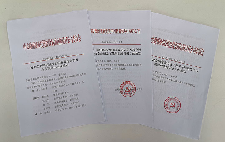 隨后,迅速成立了贛州城投集團黨委黨史學習教育領導小組,下設1個辦公室,分4個工作組,推動黨史學習教育工作人員到位、分工到位、責任到位。壓實各黨支部(黨總支)責任,要求各黨支部(黨總支)結(jié)合實際制定黨史學習教育實施方案、成立組織機構(gòu)。各黨支部(黨總支)書記主動投入足夠的時間和精力,從嚴從實抓好黨史學習教育各項部署要求落實。