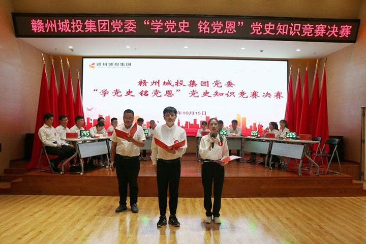 10月15日,贛州城投集團黨委舉辦"學黨史 銘黨恩"黨史學習教育知識競賽決賽。市國資委黨委黨史學習教育領導小組副組長、黨委委員、副主任黃曉東,市委組織部組織三科科長賴雯龍,市委黨史研究室正科級干部陳曄明,市委黨史研究室宣教科臨時負責人許偉卿應邀到場指導。集團黨委書記、董事長提名人選劉曉方,集團黨委副書記、總經(jīng)理提名人選郭閩軍及其他黨員高管出席活動。來自集團各黨支部(黨總支)的6支代表隊的參賽選手及黨員、群眾代表等共約90人參加。
