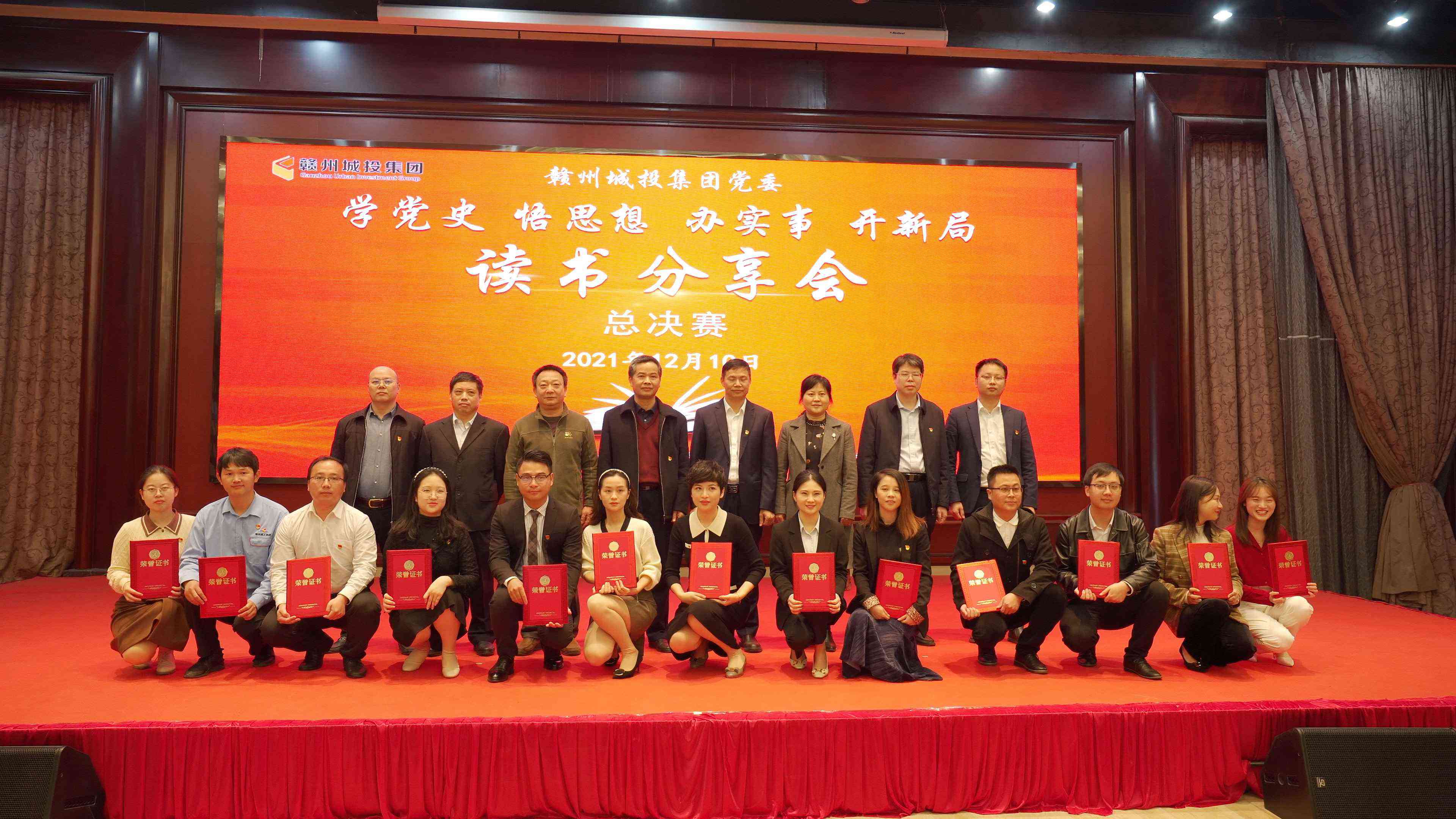 12月10日上午,贛州城投集團黨委“學黨史 悟思想 辦實事 開新局”讀書分享會總決賽圓滿落幕。市國資委黨委委員、副主任黃曉東和相關科室負責人、市國資系統(tǒng)其他集團分管領導以及黨群口負責同志蒞臨指導,集團黨委副書記黃家偉出席活動,集團全體黨員到現(xiàn)場觀看。
